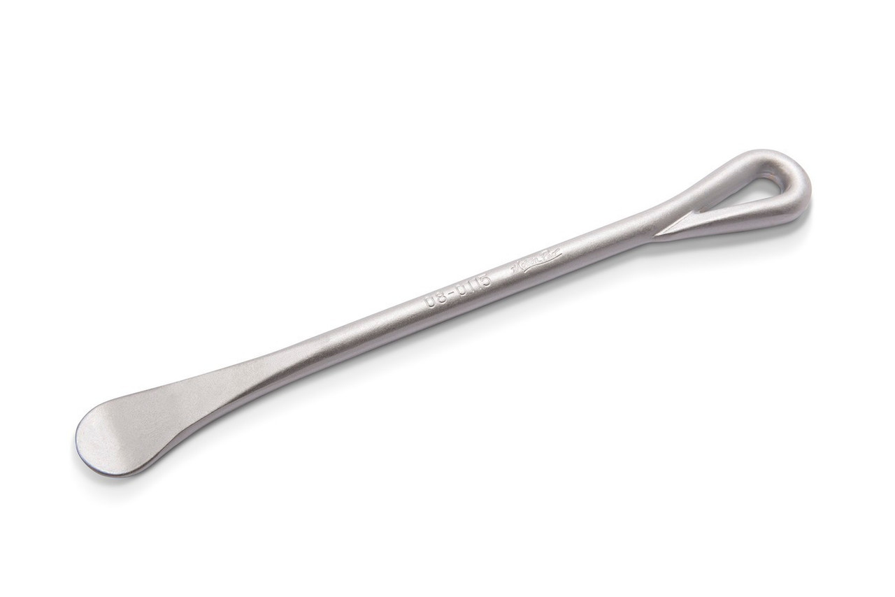 Curved end fits securely in the hand Hard nickel pewter finish 10 inches long and weighs 7.1 oz. Width at spoon is 25mm Recommended by top tire changers08-0115